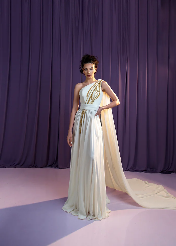 SS 22 This dress collection is perfect for the modern woman looking to stand out. With five dresses in different colors including beige, red, white, and green,there is something for every occasion. SS 22 The dresses are all floor-length andrange from neutrally classic totight-fitting and modern. Some of the dresses feature gemstone details. I’m a paragraph. Click here to add your own text and edit me. It’s easy. while others have flowy material or over-the-shoulder capes for an extra touch of sophistication.